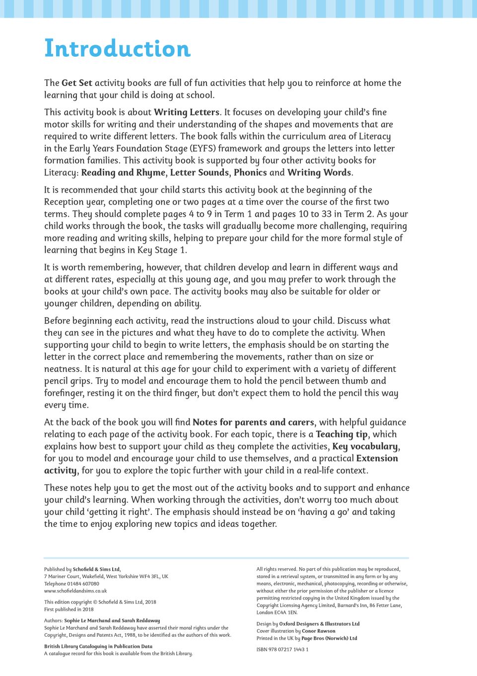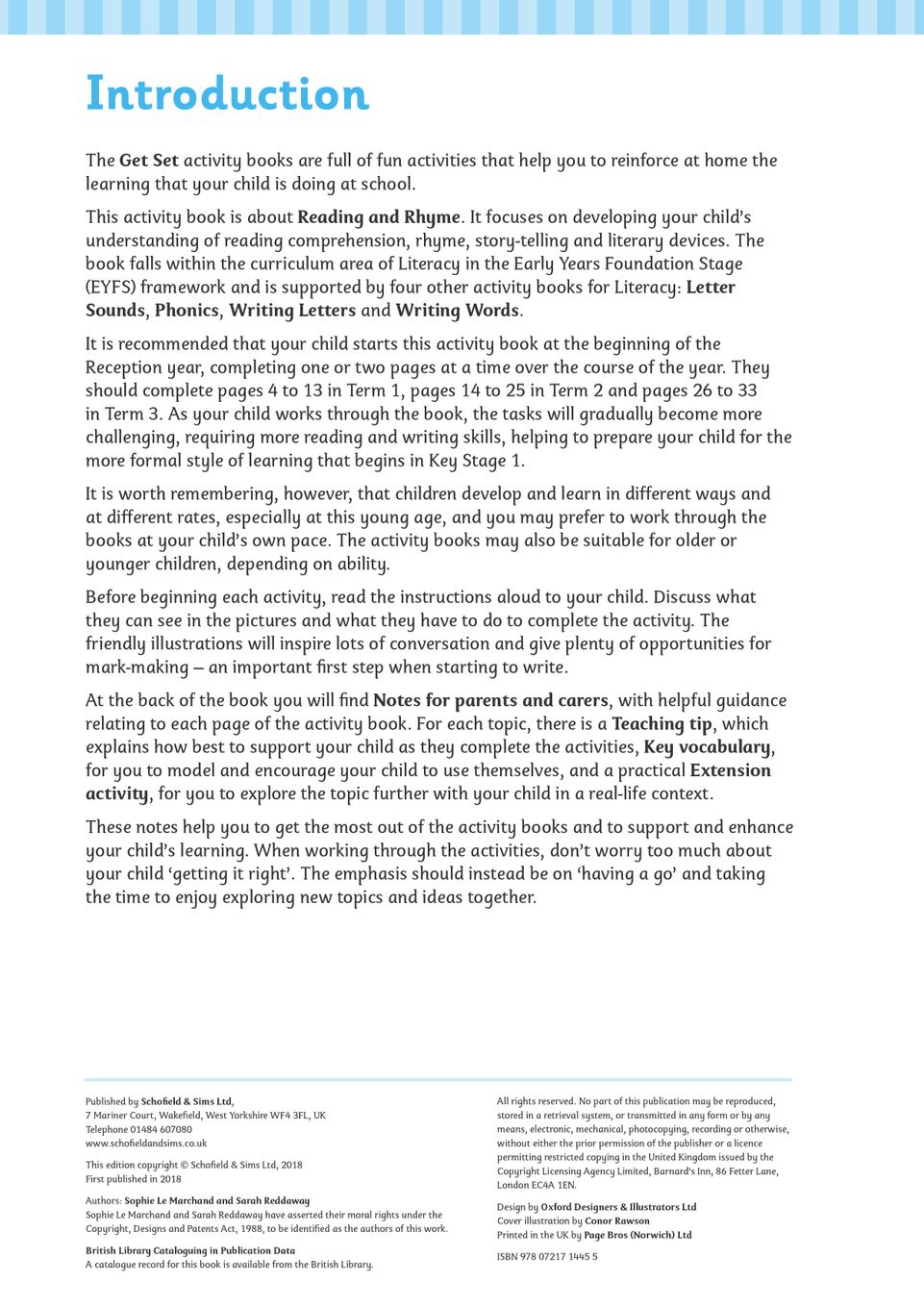 - Five workbooks from Schofield and Sims Get Set Early Years, designed to work together and bridge play to formal learning