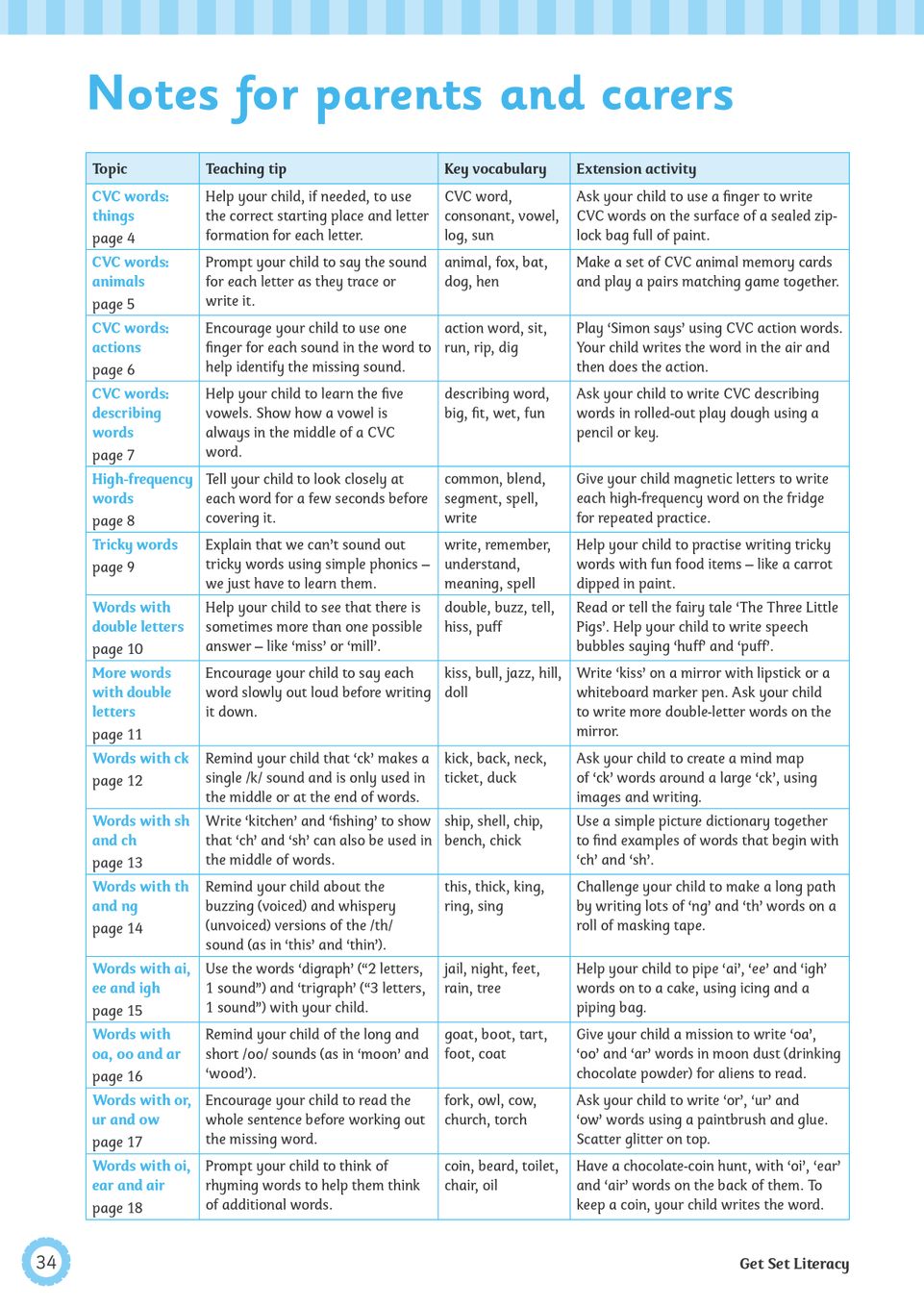 - Includes teaching tips and extension activities in the notes for parents and carers