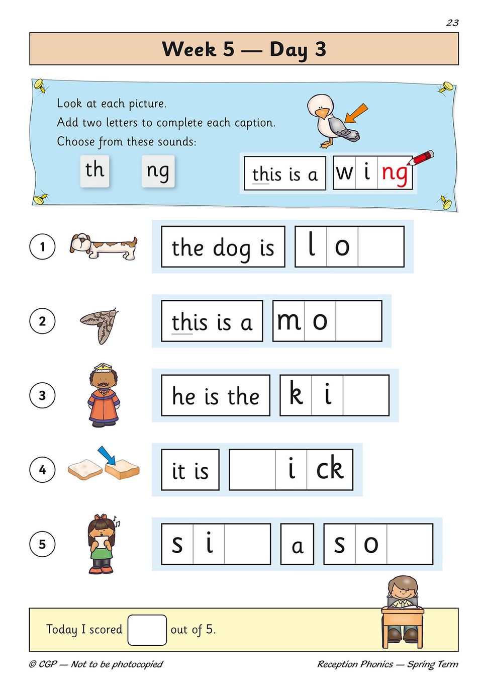Finally, the Reception Phonics Daily Practice Book: Spring Term is also very useful for children studying outside of the UK on comparable international curriculums such as the Cambridge Primary Curriculum or The Pearson Edexcel International Primary Curriculum.