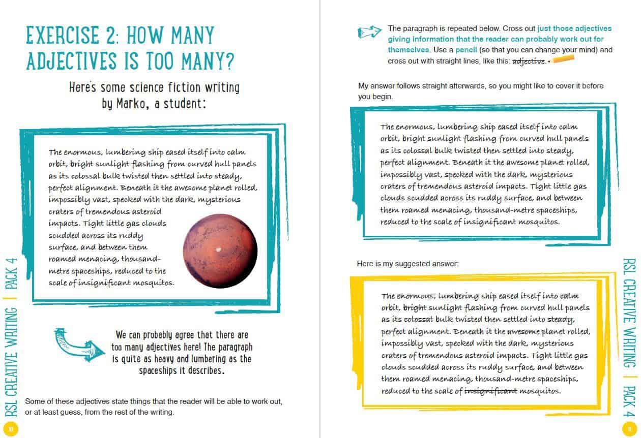 Finally, the RSL Creative Writing Workbook 2 (Ages 9-13) is also very useful for children studying outside of the UK on comparable international curriculums such as the Cambridge Primary Curriculum or The Pearson Edexcel International Primary Curriculum.