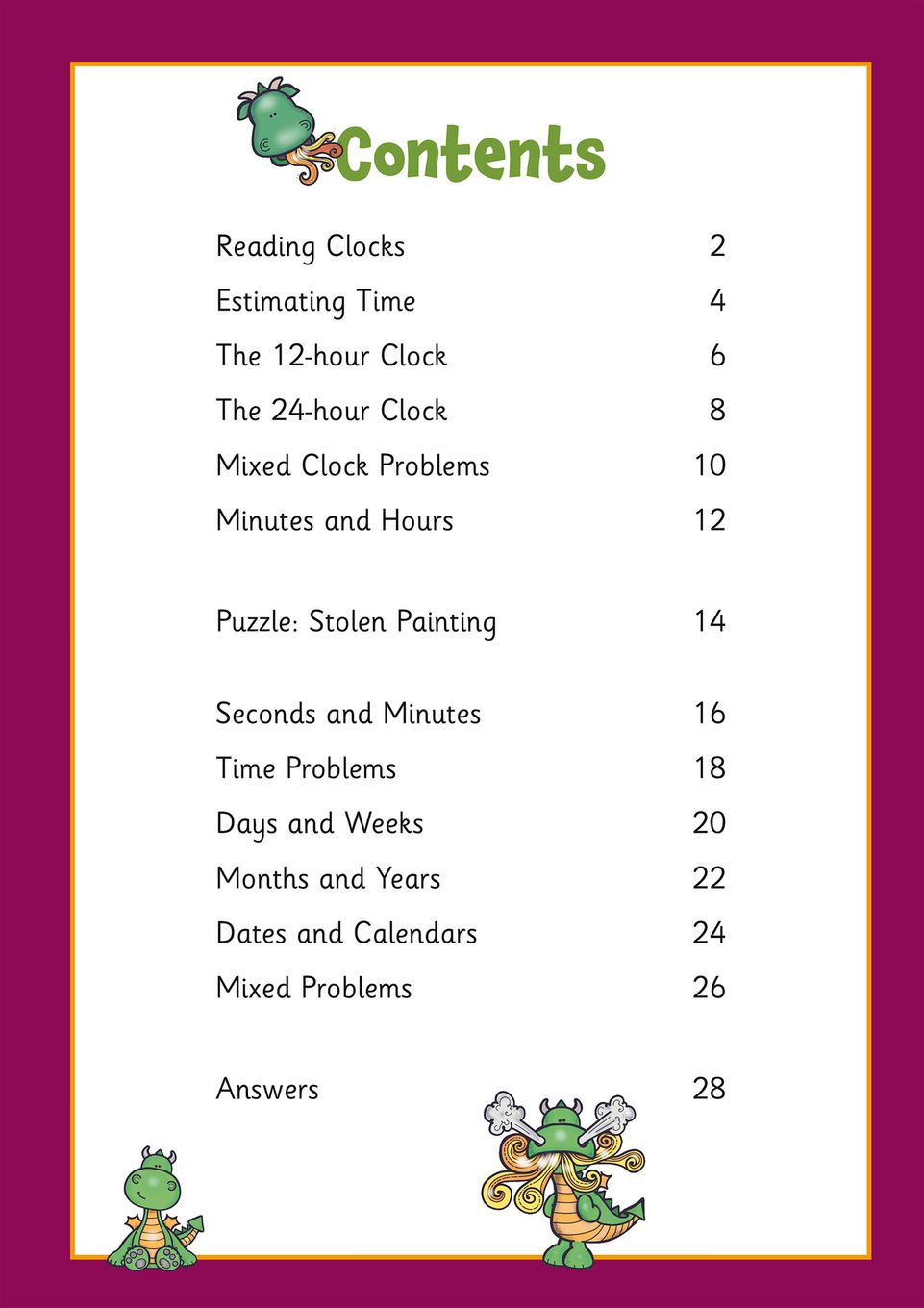 - • Includes Telling the Time practice with colourful diagrams and puzzles