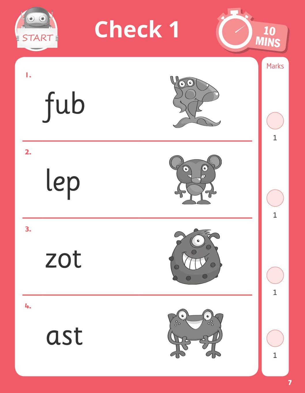 - • Aligned to the Year 1 Phonics Screening Check format and question types