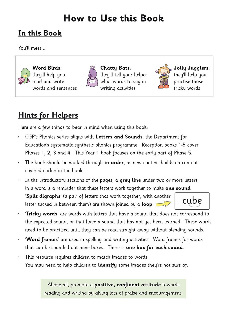 CGP's approach combines engaging illustrations with progressive activities that keep young learners interested without overwhelming them. Each sound is introduced through the 'Letters and Sounds' programme, then reinforced with colourful characters and carefully structured exercises that move from recognition to reading and writing. Because the workbook is self-contained and clearly sequenced, you can drop in for ten minutes of practice whenever it suits your routine, and your child will know exactly what to do on every page.