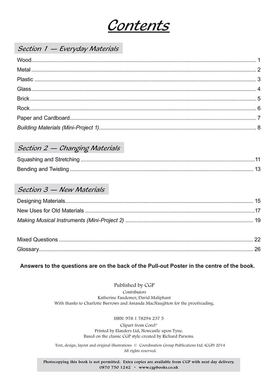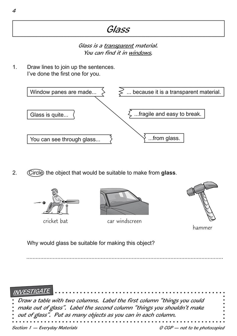 - Ages 6–7 (Year 2) science workbook aligned to the English National Curriculum for Uses of Materials