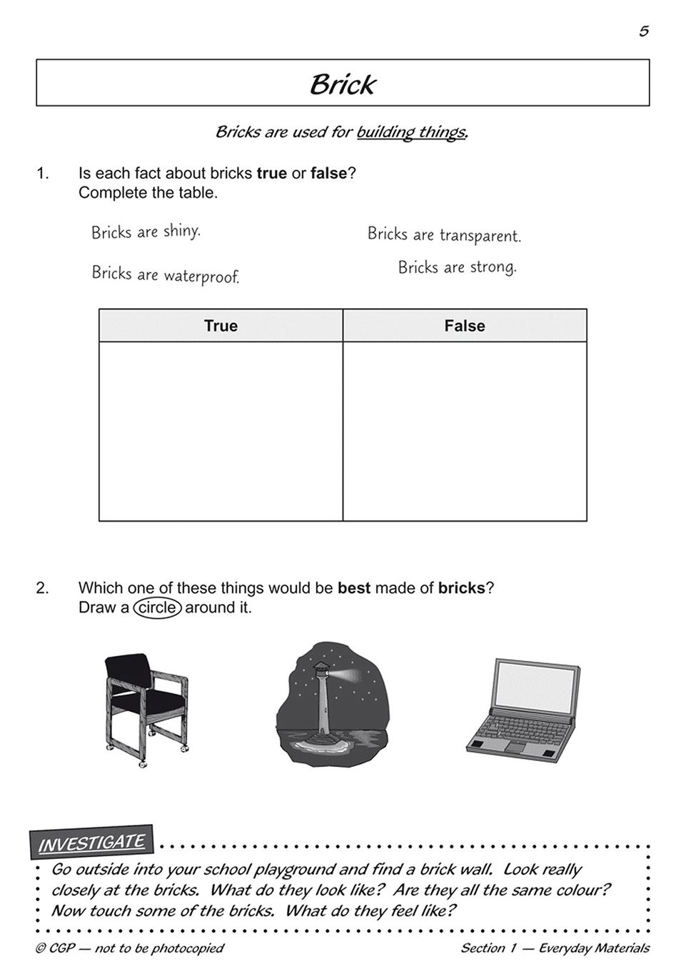 Year 2 Science Workout - Uses of Materials (Ages 6-7)