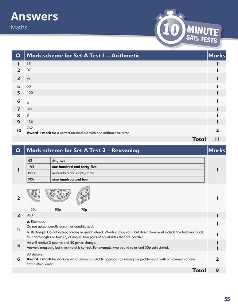 - Nine complete mini-test sets, each with Reasoning and Arithmetic papers in authentic SATs format