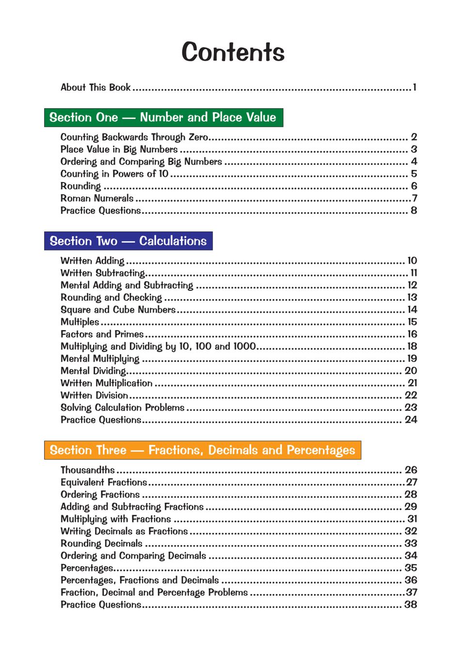 - • Includes Fractions, Decimals, Times Tables & Geometry