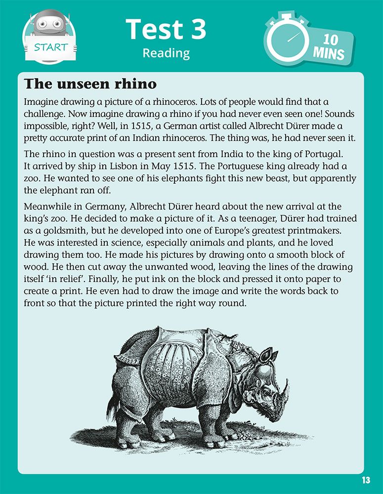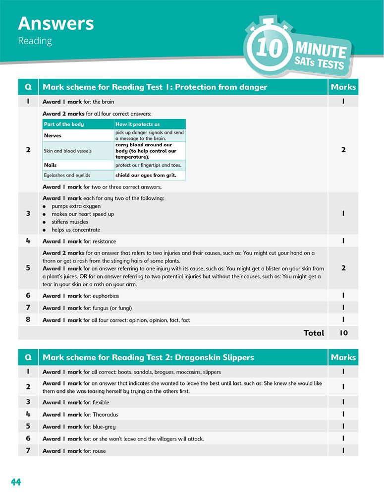 - Ten complete 10-minute reading tests covering fiction, non-fiction and poetry in National SATs format
