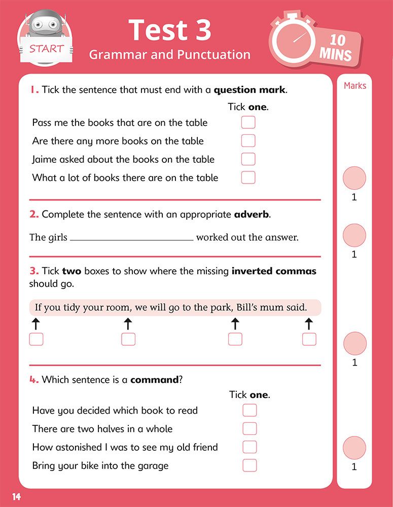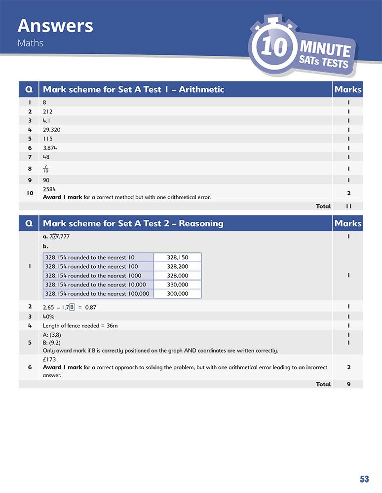- Ten-minute tests with question types and mark schemes that match National test formats
