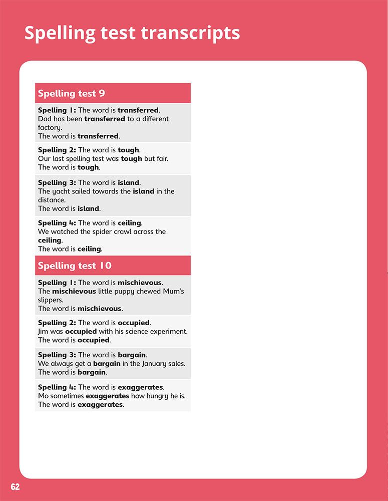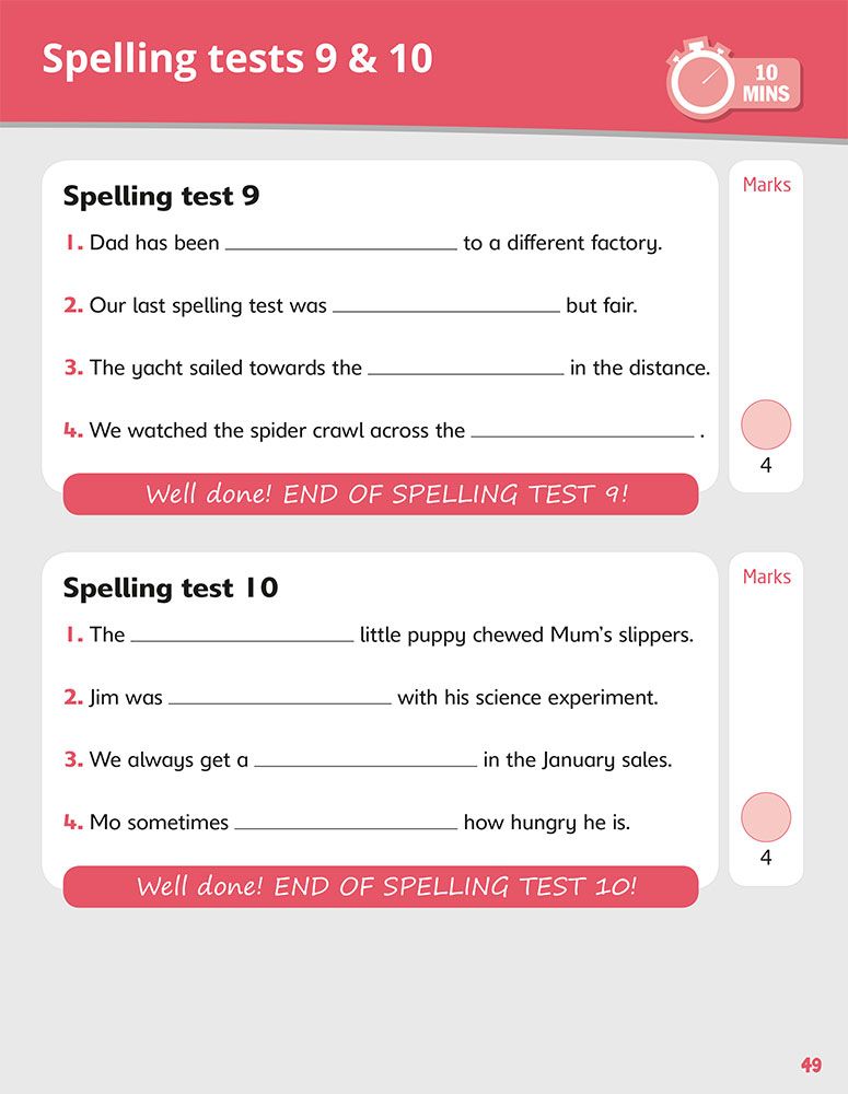 - SPaG book features spelling test transcripts; Maths book includes a skills-check section for key topics