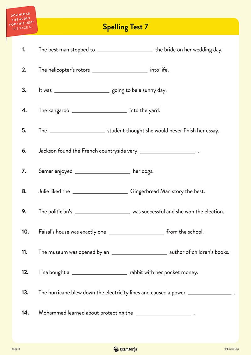 - 20 audio-led spelling tests with professional narration, instructions and timed pauses that replicate SATs conditions